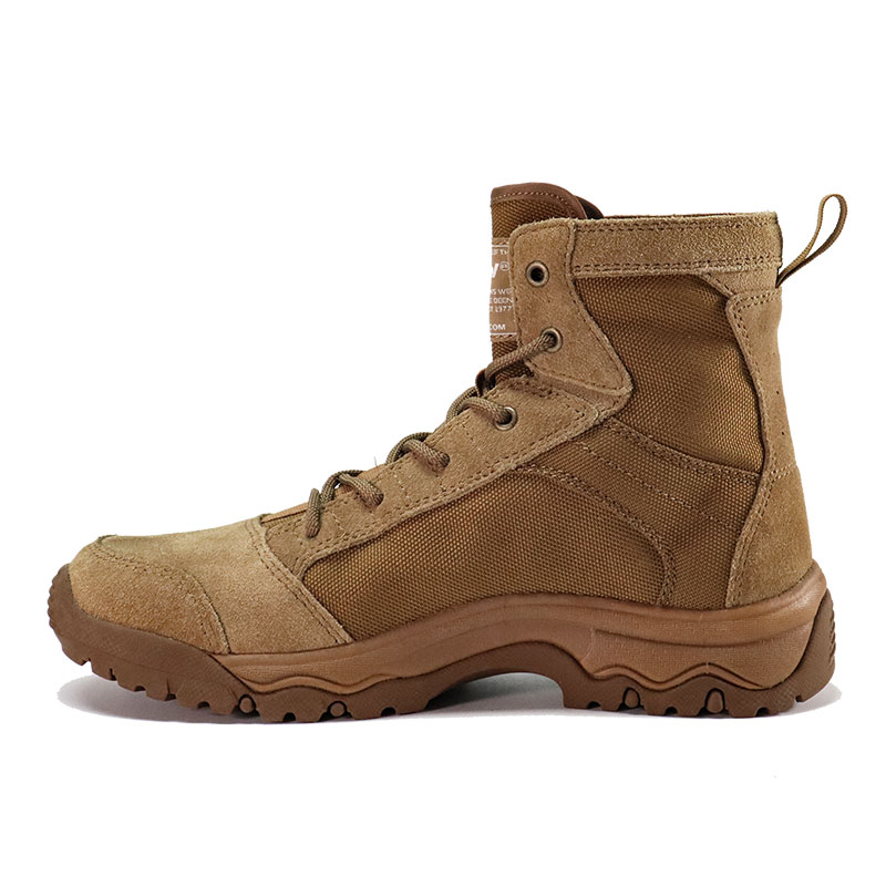 Mula sa mabatong mga wadis hanggang sa maluwag na buhangin, ang Cordura Fabric Rubber Desert Tactical Boots ay inihanda para gumanap. Ang matibay na Cordura na pang-itaas ay lumalaban sa pagkasira habang pinapababa ang timbang, at ang multi-directional na rubber outsole ay nagbibigay ng matatag na pagtapak sa hindi mahuhulaan na mga ibabaw ng disyerto. Magpadala sa amin ng pagtatanong para sa karagdagang impormasyon.