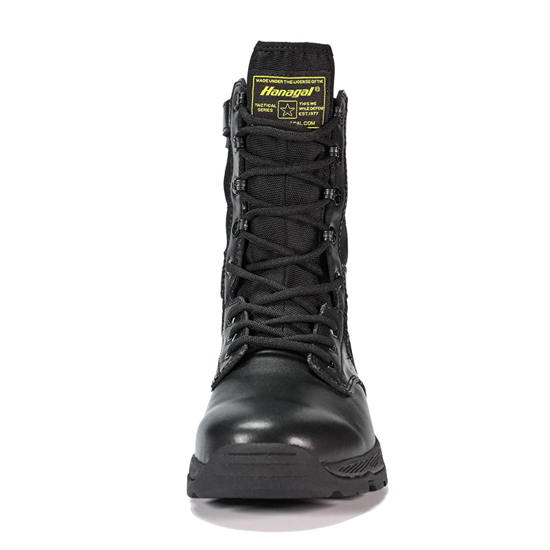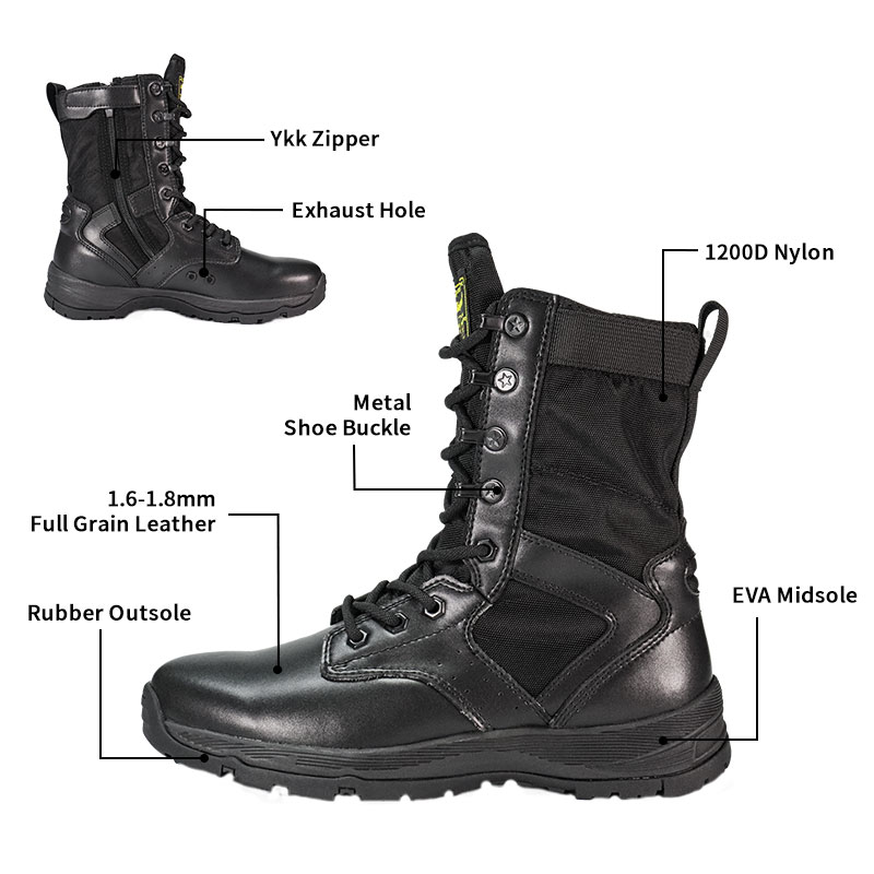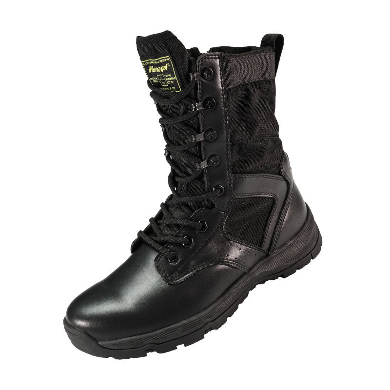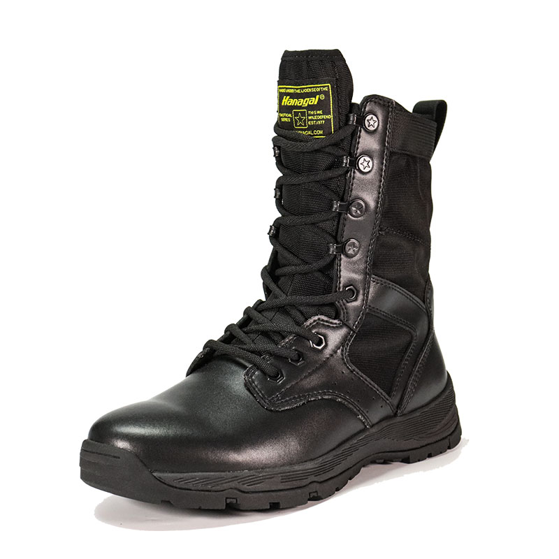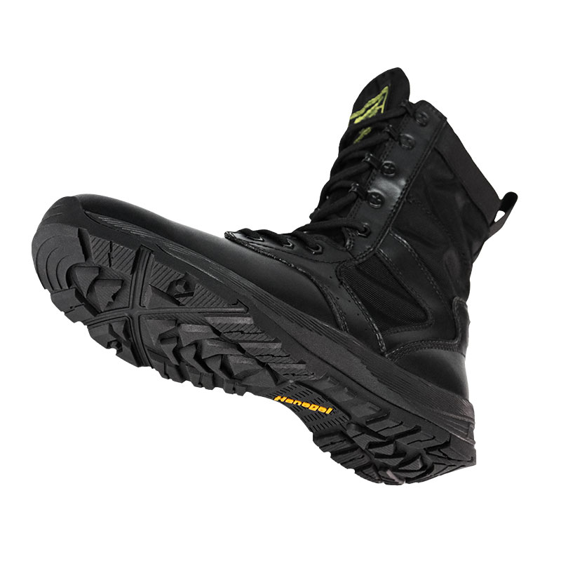 Ang Full Rubber Outsole Police Boots ay nasa stock at handa nang ipadala, na may mga order na nagsisimula sa 10 pares lamang. Para sa higit pang mga detalye o mga katanungan sa pagpepresyo, huwag mag-atubiling makipag-ugnayan anumang oras. Available din ang pag-customize na may pinakamababang order na 800 pares. At ang modelong ito ay may mga sumusunod na pakinabang: