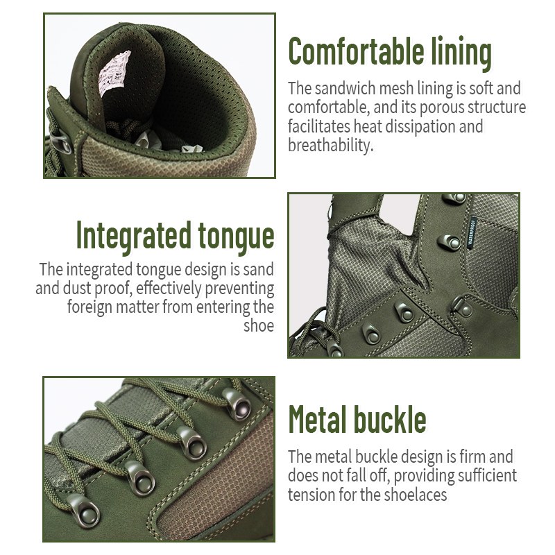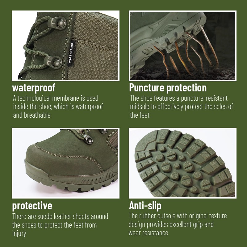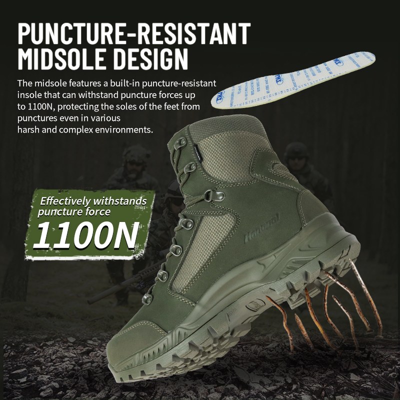 Masungit na lupain. Mga nakatagong panganib. Hindi mahuhulaan na lupa. Ang Puncture-Proof Waterproof Combat Boots ay ginawa para sa mga sandaling hindi mo kayang tumingin sa ibaba at mag-alala. Inihanda gamit ang midsole na lumalaban sa pagbutas na pumipigil sa mga pako, salamin, at matutulis na mga labi, kasama ang ganap na proteksyong hindi tinatablan ng tubig na nagpapanatili sa iyong gumagalaw sa mga basang kondisyon. Ipadala sa amin ang pagtatanong para sa karagdagang impormasyon.