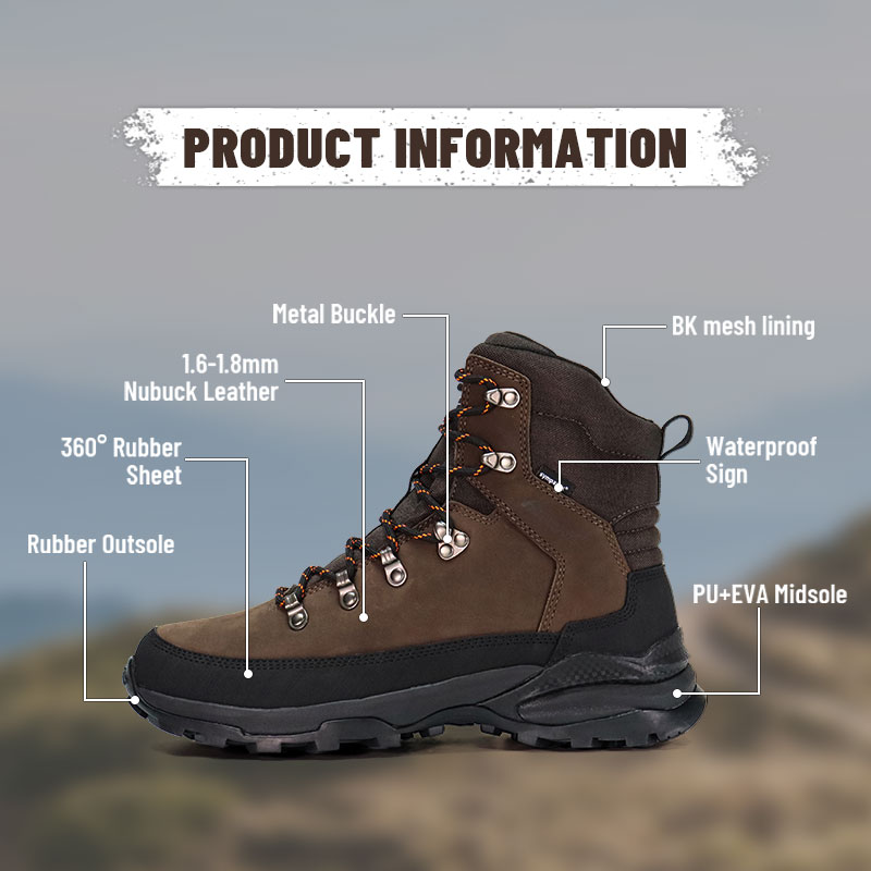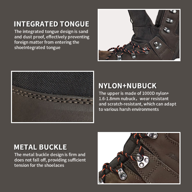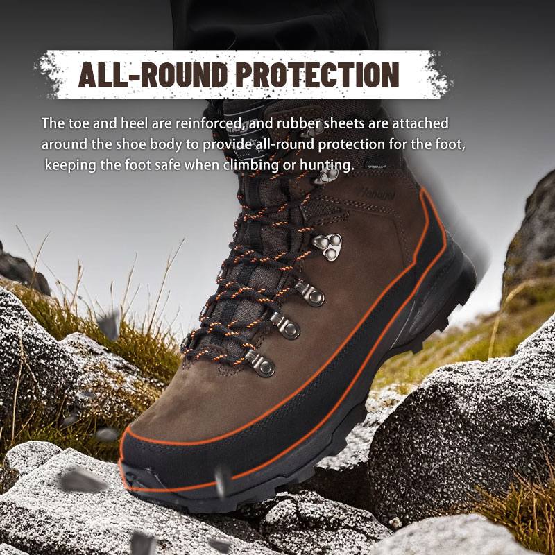 Ang daliri ng paa at takong ay pinalalakas, at ang mga goma na sheet ay nakakabit sa paligid ng katawan ng sapatos upang magbigay ng buong-buong proteksyon para sa paa, na pinananatiling ligtas ang paa kapag umaakyat o nangangaso.