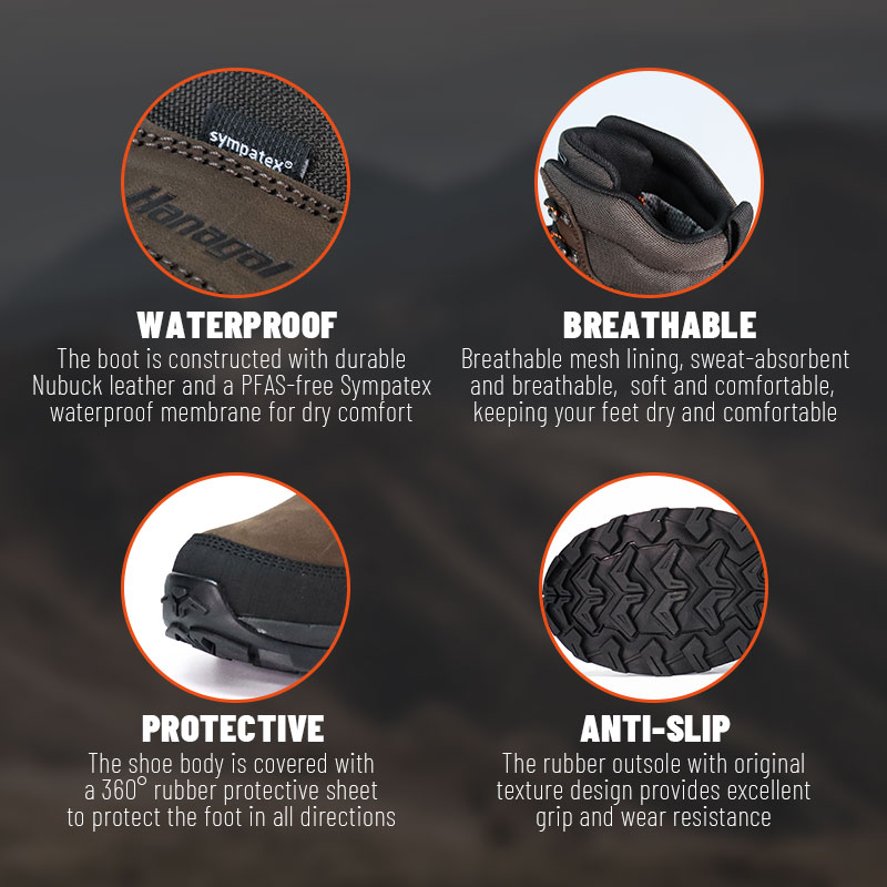 Hindi tinatagusan ng tubig na mapagkakatiwalaan mo. Katatagan na napupunta sa distansya. Nilikha gamit ang teknolohiya ng Sympatex membrane, ang Sympatex Waterproof Durable Hiking Boots na ito ay nagpapanatili ng moisture out habang hinahayaan ang mga paa na huminga—para manatiling tuyo ang bawat milya. Ginawa upang mahawakan ang masungit na lupain na may pangmatagalang kaginhawahan at maaasahang traksyon. Ipadala sa amin ang pagtatanong para sa karagdagang impormasyon.