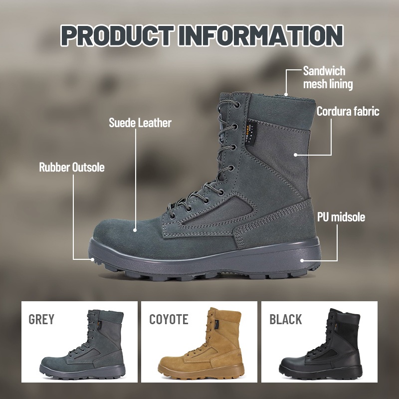 Ang Windproof Sandproof Anti-slip Desert Tactical Boots na ito ay available para sa pag-customize sa mga kulay, materyales, at detalye, na may MOQ na 800 pares, perpekto para sa mga collaboration ng brand at group procurement. At ang mga disyerto na bota na ito ay may mga sumusunod na pakinabang: