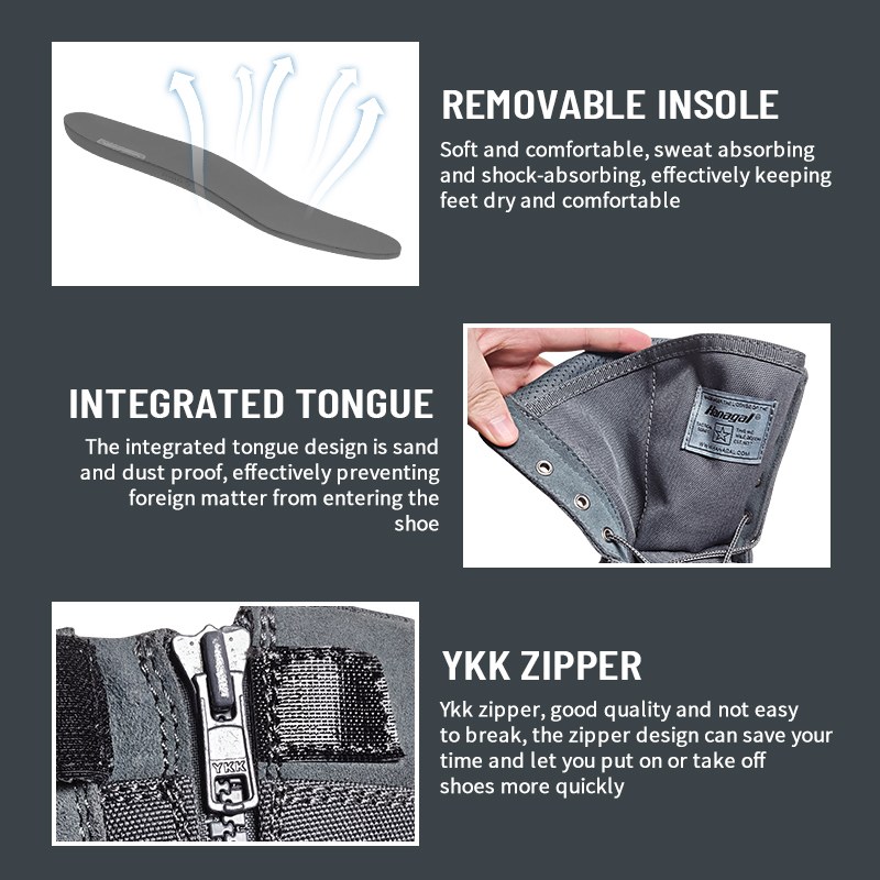 Ang ibig sabihin ng YKK zipper ay mas kaunting kaguluhan, mas mabilis. Matibay, matibay, at ginagawang madali ang pagpapalit ng sapatos.